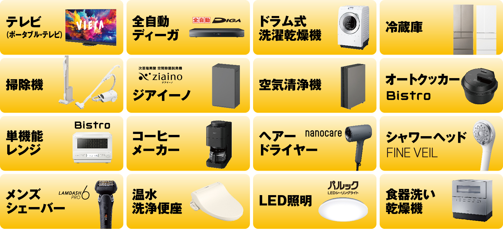 テレビやレコーダーをはじめ、ドラム式洗濯機、掃除機、冷蔵庫、LEDシーリングなど様々な商品をお得に購入できます。