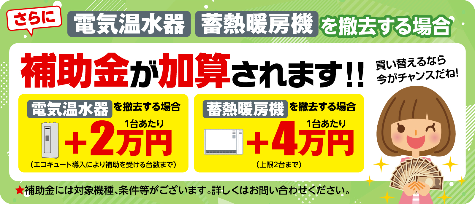 そんな方に、今年も国から大きなバックアップがあります。初期費用を抑えて、光熱費がお得なエコキュートへ賢く買い替える絶好のチャンスです!
